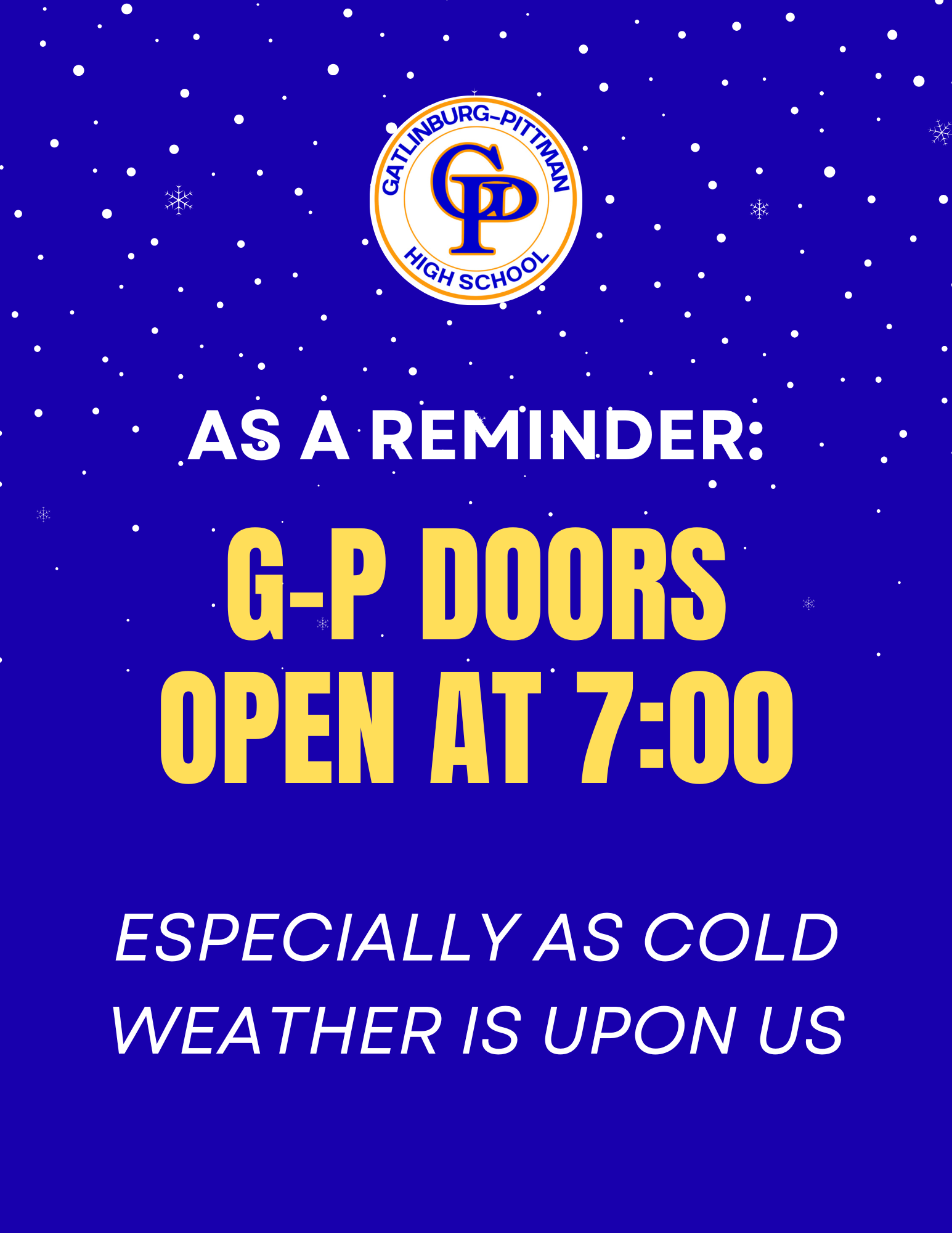 ATTENTION: As colder temperatures are here, its important to remember that our doors open no sooner than 7:00 am. To keep students safe, we ask that students are not dropped off sooner than 7:00 am.